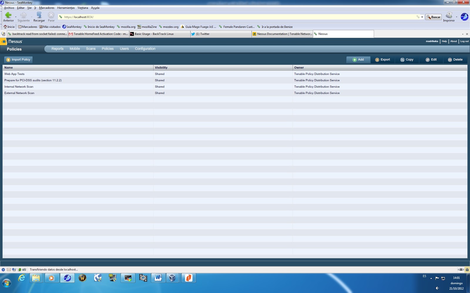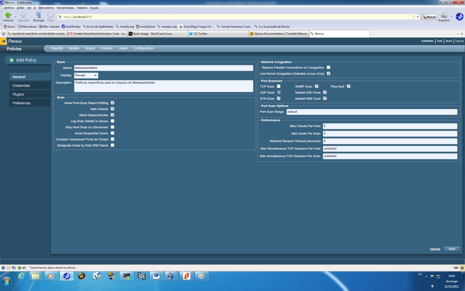 Después de instalar Nessus, registrarlo, bla, bla, bla….